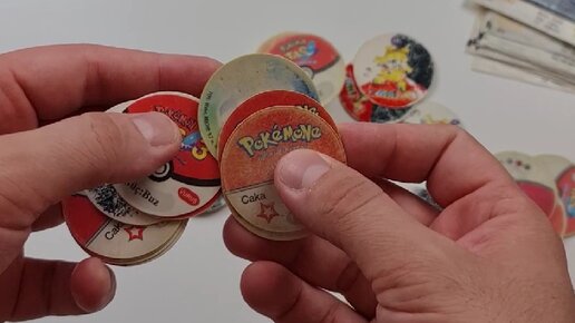 Старые затертые об асфальт фишки с "покемонами" из нулевых. Показываю свою коллекция кэпсов