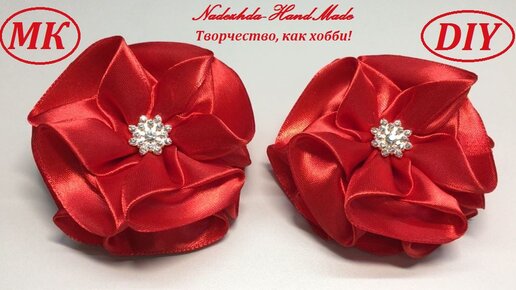 Рождественская звезда из атласной ленты, 4 см. МК/DIY. Flowers from ribbons.