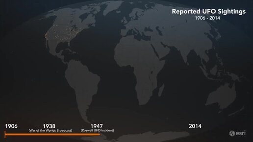 Карта сообщений о наблюдении НЛО за последние 115 лет