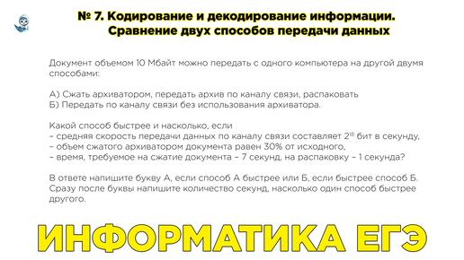 Информатика ЕГЭ. № 7. Кодирование и декодирование информации. Передача информации. Сравнение двух способов передачи данных