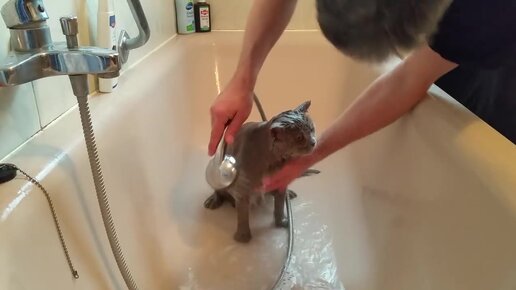 Купаем британского котика.