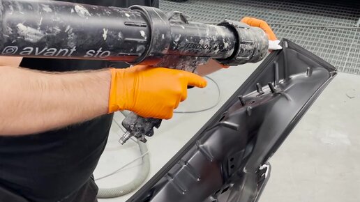 Наношу герметик на внутреннюю часть новой детали от автомобиля