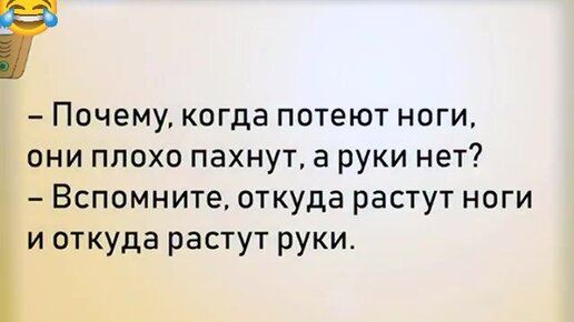 - Почему, когда ноги потеют, они плохо пахнут, а руки нет?...Анекдот