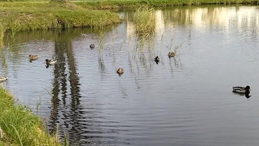 На городском пруду.