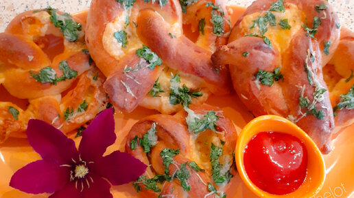 СЫРНЫЕ КРЕНДЕЛЯ ИЗ СЛОЕНОГО ДРОЖЖЕВОГО ТЕСТА С СЫРОМ ЧЕСНОКОМ И ЗЕЛЕНЬЮ