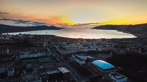 Как в полёте звучит квадрокоптер. Закат над Магаданом.