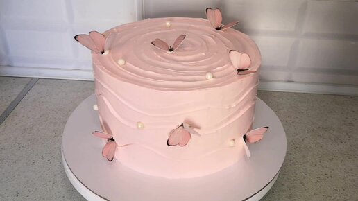 Торт клубника в шоколаде в нежном оформлении бабочками