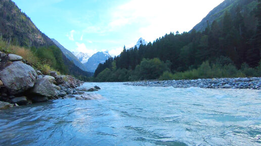 Долина реки Теберда и Аманауз в 2,7к 60fps. Кавказские горы. Домбай.