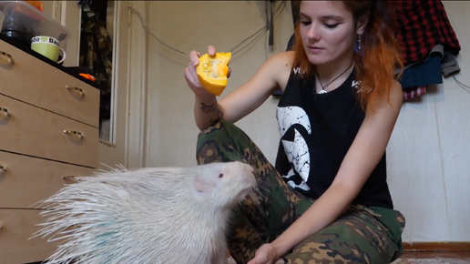 В Иркутске сотрудница зоосада приютила дикобраза-альбиноса