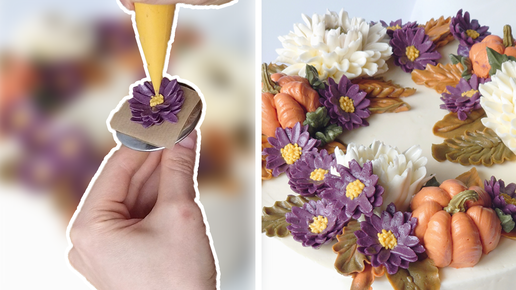 Осенние сиреневые цветы из крема - астра новоанглийская, астра сентябринка из белково-масляного крема | Кремовая флористика