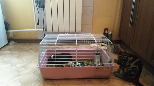 Морская свинка дружит с котенком вислоухим шотландцем