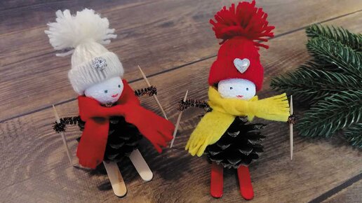 Красивая осенняя поделка из шишек "Лыжник". Можно использовать как елочную игрушку. Поделки для детей и взрослых!