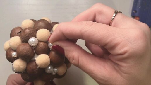 Из скорлупы орехов макадамия сделала праздничный топиарий /Украшение для дома из доступных материалов