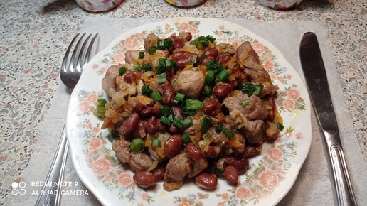 Жареная свинина на сковороде с красной фасолью. Ужин на скорую руку.