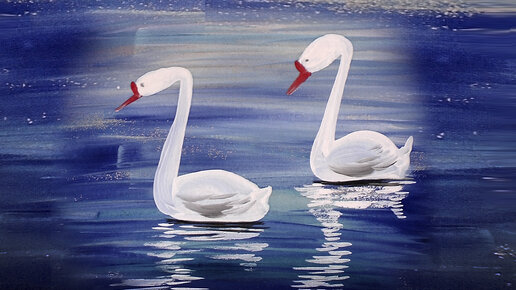 Как нарисовать лебедя на озере. Осенний пейзаж. Гуашь.