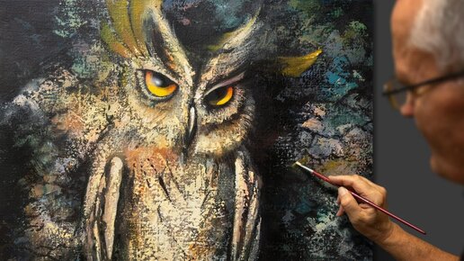 "Night Hunter" (Bird Owl) Acrylic. Artist - Viktor Yushkevich. #85 photos in 2021.