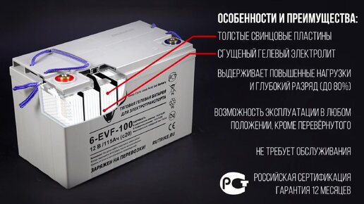 Тяговый гелевый аккумулятор RuTrike 6-EVF-100