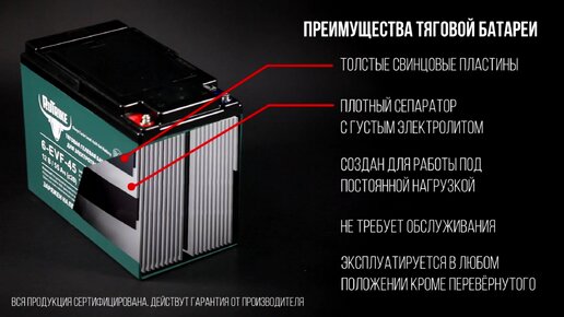 Тяговый гелевый аккумулятор RuTrike 6-EVF-45