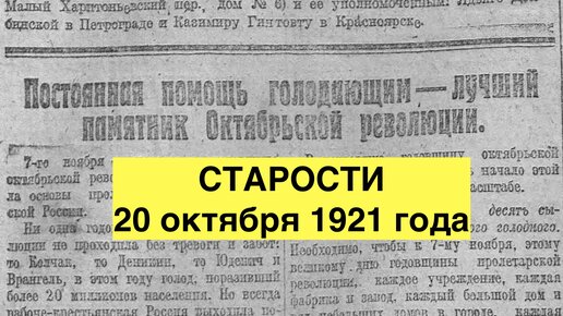 Старости 20 октября 1921 года. Постоянная помощь голодающим - лучший памятник Октябрьской революции. Искусство и культура.