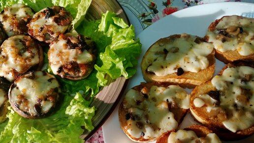 Шампиньоны с моцареллой. Горячие бутерброды с грибами и сыром