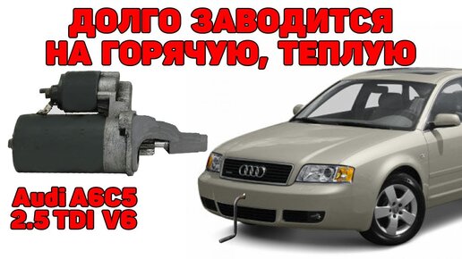 Долго заводится на горячую, теплую. Проверяем обороты стартера. Audi A6C5 2.5 TDI V6.