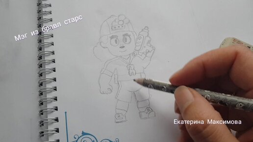 Мэг персонаж из игры бравл старс, рисунок карандашом.