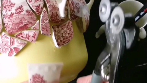 Нашла применение старому сервизу. Получилось необыкновенное кашпо