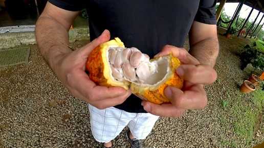 Первый раз пробую Спелый плод Какао прямо с Дерева в Коста-Рике.