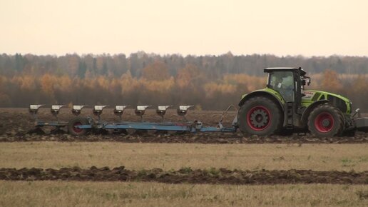 MASSEY FERGUSON 7724S ,CLAAS AXION 950 ,JOHN DEERE 8285 с плугами LEMKEN на вспашке поля.
