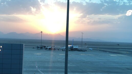 Потрясающий закат над самолетами. Аэропорт Хургады, где меня нещадно продуло