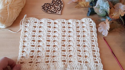 Вяжем простой, ажурный узор с вертикальными дорожками крючком. Для начинающих.