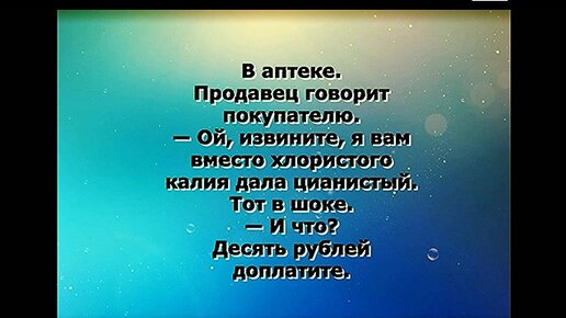 В аптеке. Продавец говорит покупателю. -Ой извините, я вам вместо хлористого калия дала цианистый... Анекдот