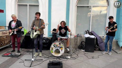 Кавер-версия песни «Пачка сигарет» Виктора Цоя (группа «Кино») на трех гитарах и барабанах – уличные музыканты Санкт-Петербурга