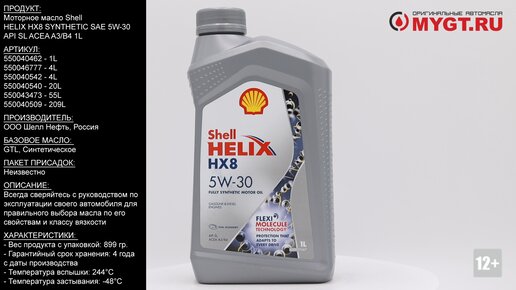 Моторное масло Shell HELIX HX8 SYNTHETIC SAE 5W-30 API SL ACEA A3/B4 1L #ANTON_MYGT