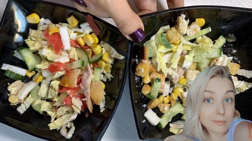 Делаю салат из того, что есть в холодильнике: окорочок, огурец и еще пара продуктов. Показываю и пробую, что получилось.