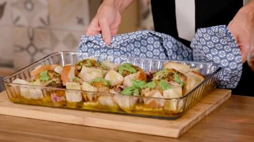 Куриные бедрышки, запеченные с тыквой под соусом песто