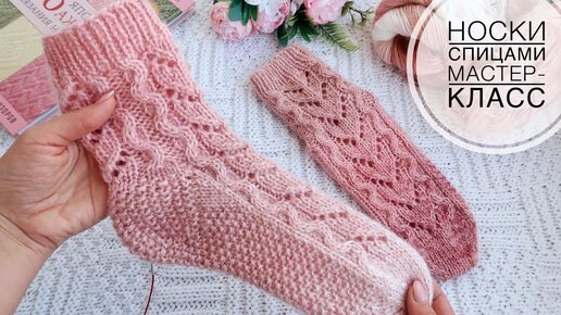 простые носки спицами с косой и ажуром легко и просто Мастер класс для начинающих