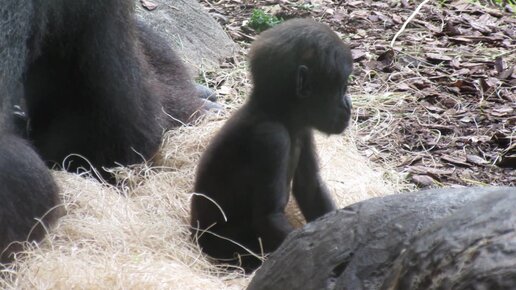 Горилла с детёнышем в парке Бушгарден. Рядом с такой мамой ребёночка никто не решится обидеть. Папа из окна наблюдает