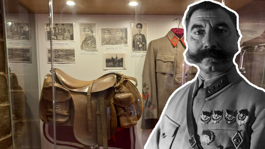 Осматриваю личные вещи Семёна Будённого: гимнастёрка, боевое седло времён Гражданской войны (1917-1922)