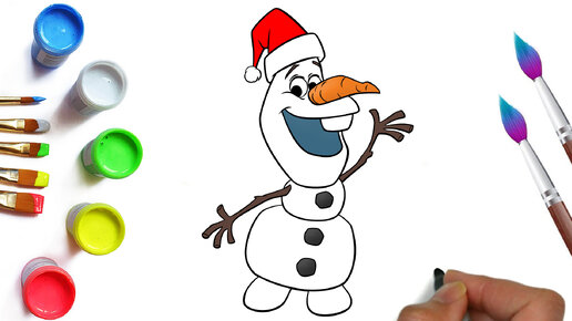 Как нарисовать снеговика Олафа из мультика Холодное сердце, легкие и красивые рисунки для детей на новый год