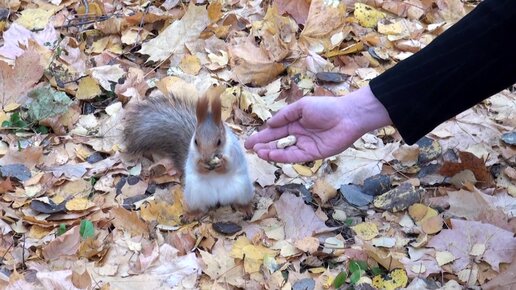 Запасливая белка позволяет себя гладить