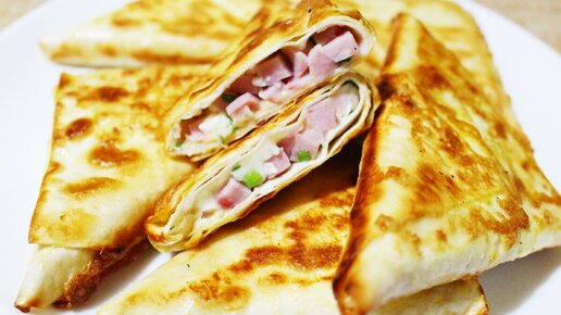 Треугольнички из лаваша с сыром и ветчиной. На завтрак лучше не придумаешь