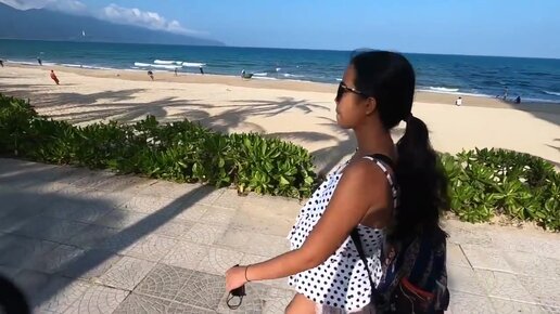 Идем на белоснежный пляж рядом с апартаментами во Вьетнаме. Беременная Найви плавает и ныряет