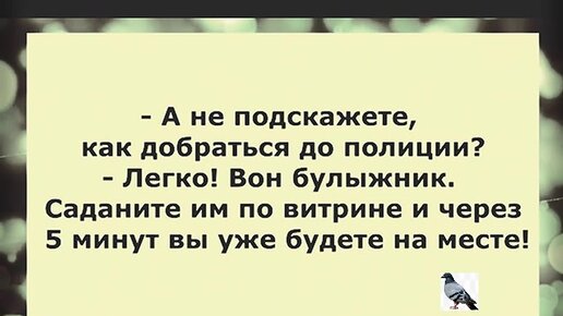 -А не подскажите, как добраться до полиции? -Легко! Вон булыжник... Анекдот