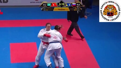 Вера Ковалёва против Софьи Берульцевой на турнире каратэ 1 в Москве. Попала невидимую маваши в голову.