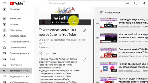 Библиотека и Плейлисты на главной странице YouTube