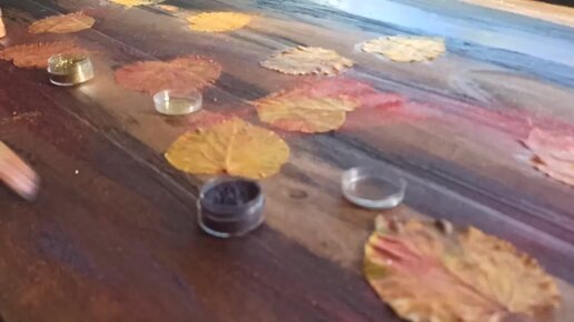 Делаем стол из массива сосны и эпоксидной смолы. Добавляем осенних листьев для креатива, результат получается превосходным