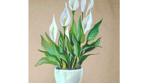 Рисуем цветок "Женское счастье" гуашью на крафтовой бумаге.