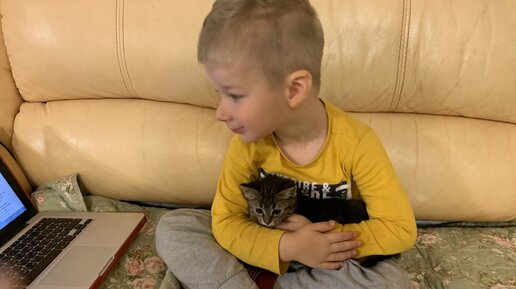 Зачем смотреть мультики, смотри на меня. Котенок смотри мультик с ребенком