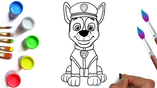 Гонщик Щенячий патруль рисунок, как нарисовать собаку Гонщика из детского мультика, анимация рисования для детей и малышей